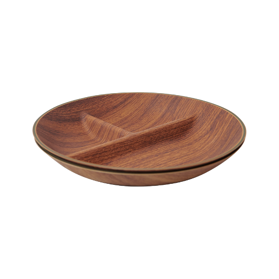 トルコのキッチンウェアメーカーevelin社のウッド柄ランチプレート。ダイニングテーブルに馴染むシンプルなデザイン。3か所に区切られたデザインで、トレンド感のあるお洒落なワンプレートランチがお楽しみいただけます。アウトドアなどのレジャーや、お子様用のプレートにもお使いいただけます。