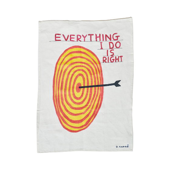現代アーティストのデイヴィッド・シュリグリーとメルボルンのアートショップThird Drawer Downによるアートプロダクト。"私のすることは全て正しい”家族へのメッセージや自分への励ましともとれるメッセージがプリントされたティータオル。