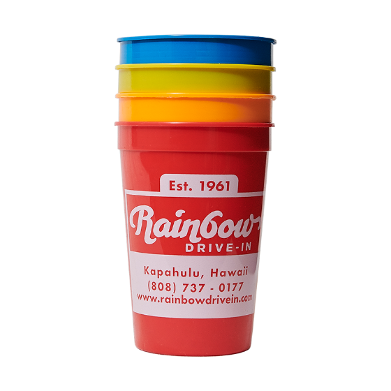 ハワイで50年以上も歴史のある老舗Rainbow DRIVE-IN プレートランチを食べに地元のロコたちも通う人気店のロゴ入りスタジアムカップです。