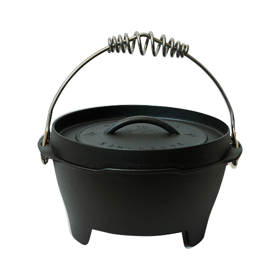 キッチンでも屋外でも使用可能なダッチオーブン。密閉度が高く、完璧な無水調理が可能。蓋を回転することで鍋と蓋の間に隙間を作ることができます。蓋裏にブリケットのヒーティグガイドのある、ユニークなデザイン。脚部分はキッチンの五徳にも安定します■容量:3.8L■重量:6.35kg